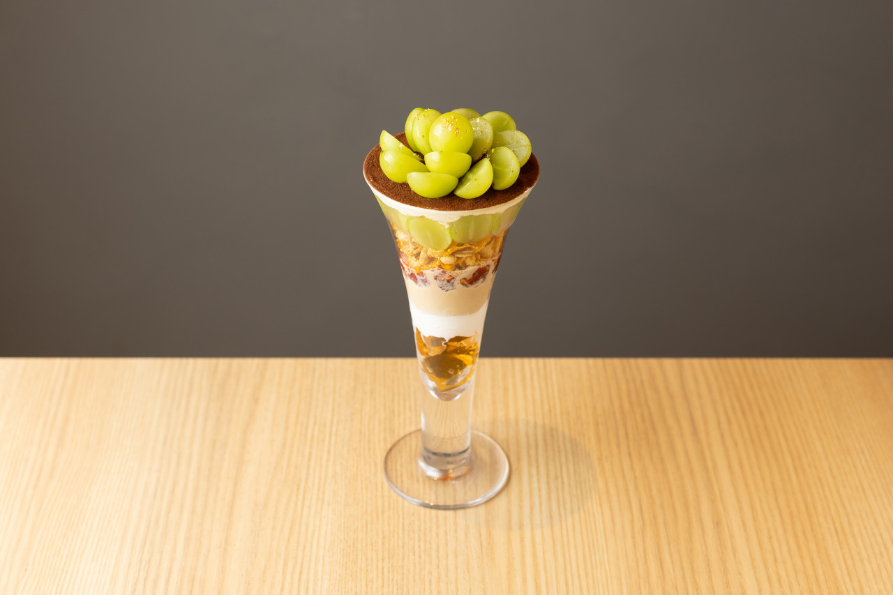 提供パフェ一例:岡山県産マスカットのミルクティティラミスパフェ 2,300円