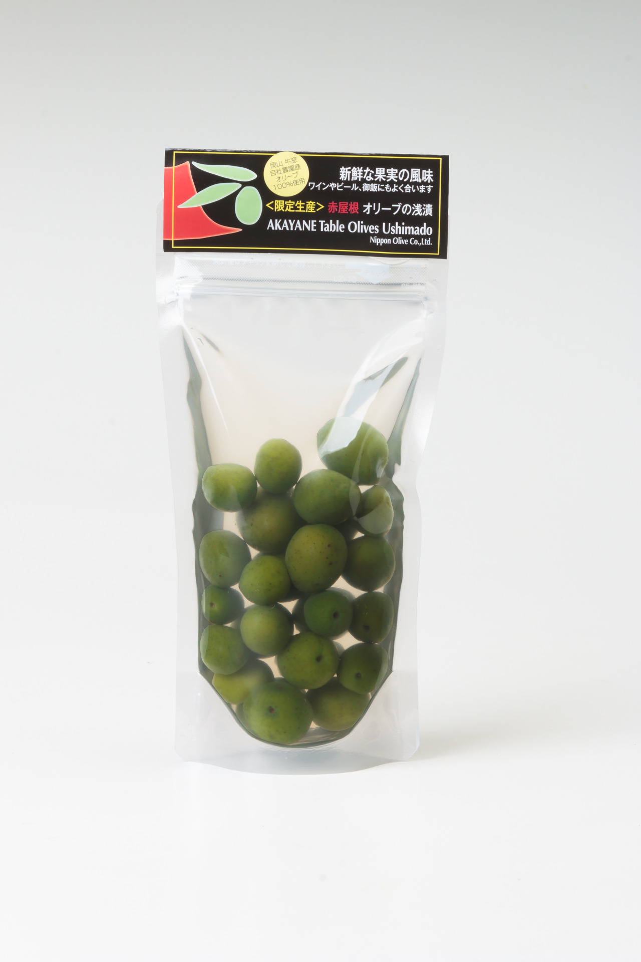 商品名:グリーンオリーブ塩漬(愛称:赤屋根オリーブの浅漬)