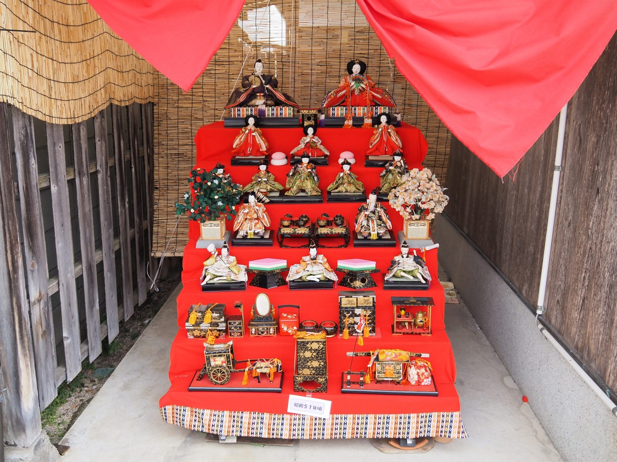 あちこち、民家の軒先にも雛人形が並んでいます。
