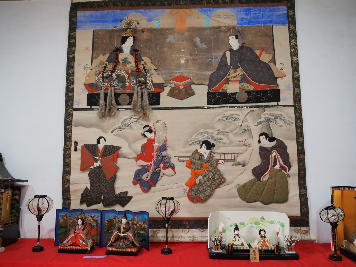 立ち寄ると、中の座敷にたくさんの七段飾り雛が飾られていました。とても華やかで、それぞれのお雛様の表情に心が和みます。