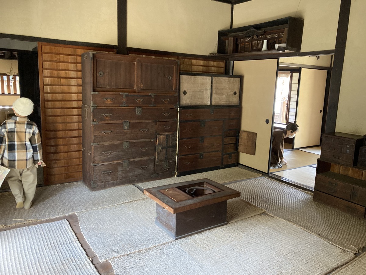 旧折井家には、当時の武士やその家族などの等身大の人形がいます。入るなりお辞儀をしてくれる武士に、子どもはかなり驚いていました。(笑)