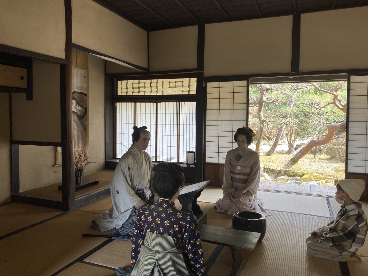 奥座敷にも食事をしているような雰囲気で人形が3人座っており、当時の風景を演出しています。