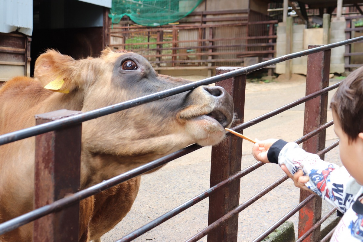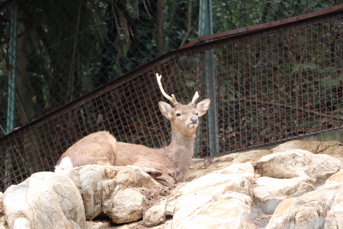 自然に近い環境で放し飼いされた様子を間近に見ることができました。角はオスだけにあり、2歳を過ぎると生え始め、袋角と呼ばれる皮膚に覆われた角に成長し、秋になると、袋角が乾燥してさけて白い角が出てくるそうです。