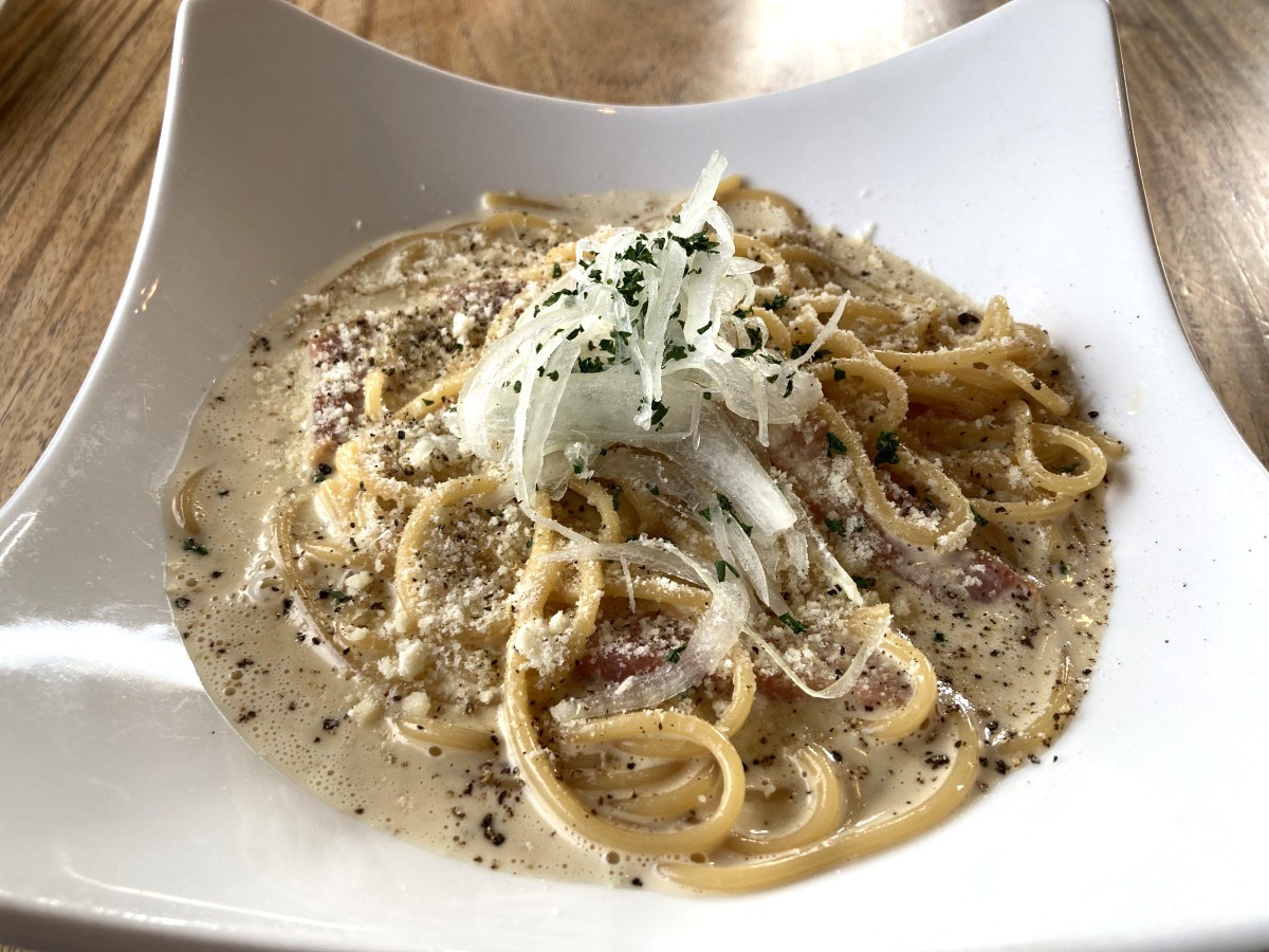まずは筆者も何度かいただいている「柚子胡椒風味のカルボナーラ」。
