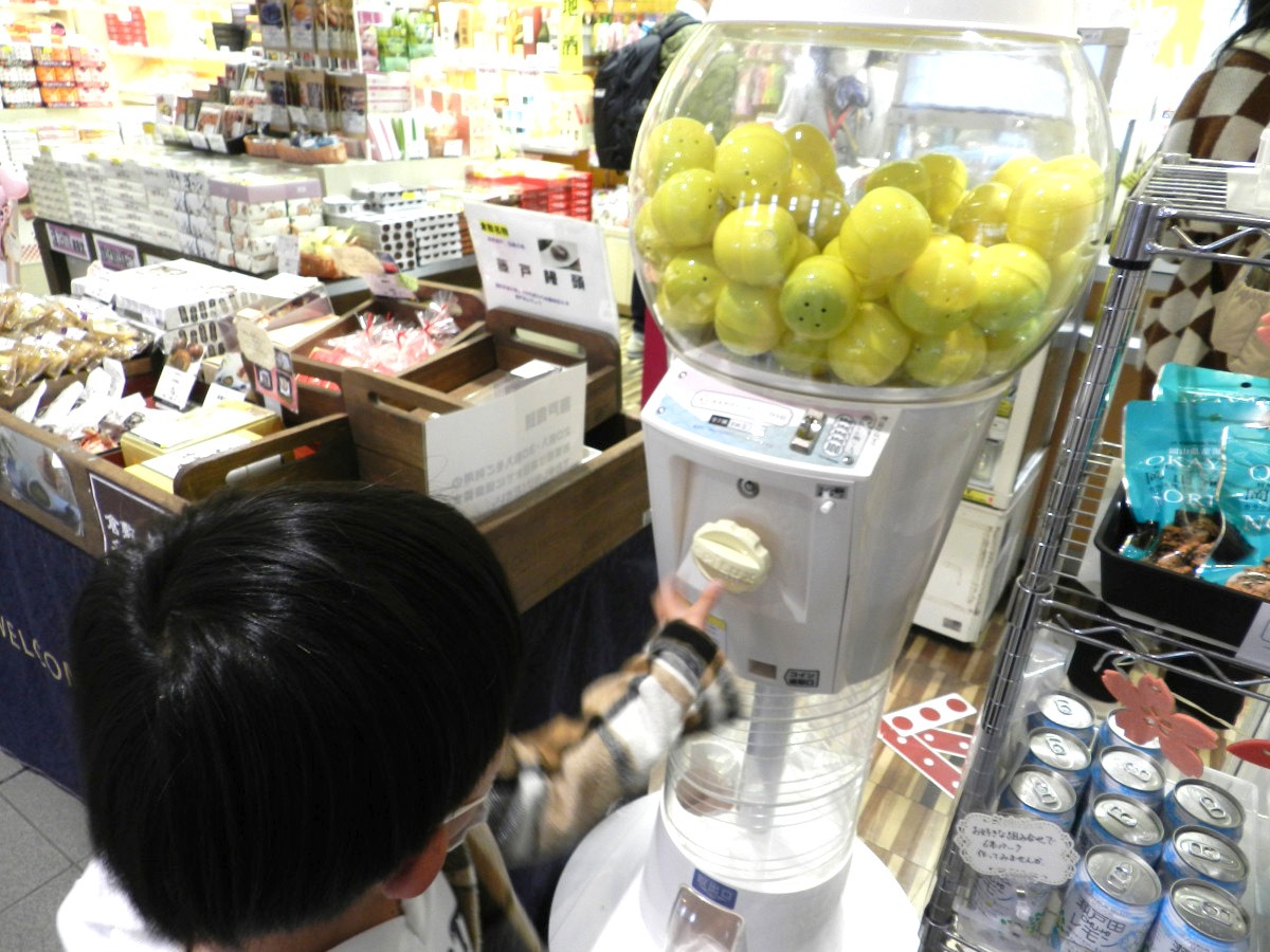 お店の外には倉敷デニムがゲットできるガチャポンがありました。普通に買うより遊び心があってとってもいいですね。デニムのミニポーチをゲットしました。500円とは思えないほど丈夫な作りになっていて重宝しそうです♪