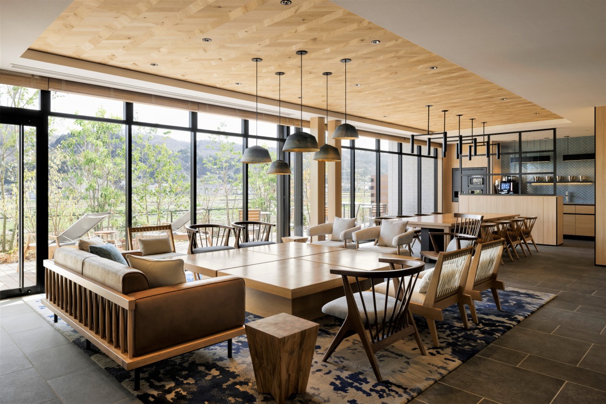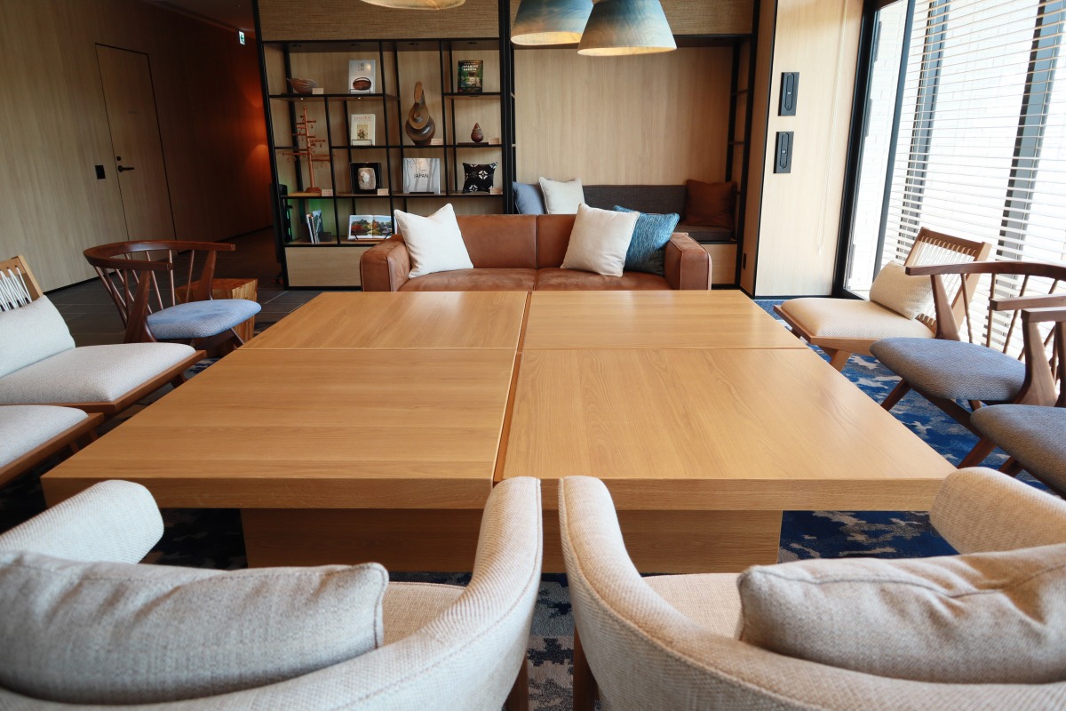 こちらは1階のロビーラウンジ。食事をしたり、会話を楽しんだり、電源も設置されているのでワーケーションも可能。宿泊者は誰でも自由に使うことができます。