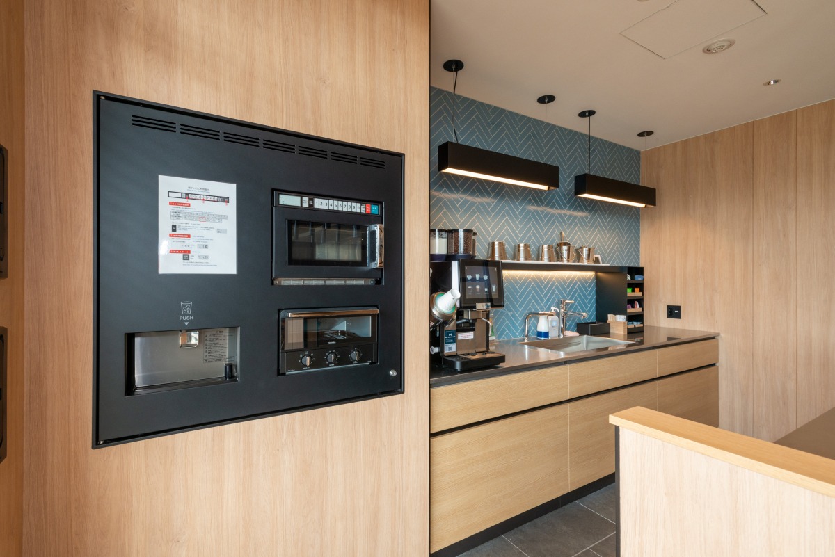 共有スペースの一画にはミニキッチンもあり。トースターやレンジも付いているので、買ってきたパンを焼いたり、料理を温めたりすることができます。