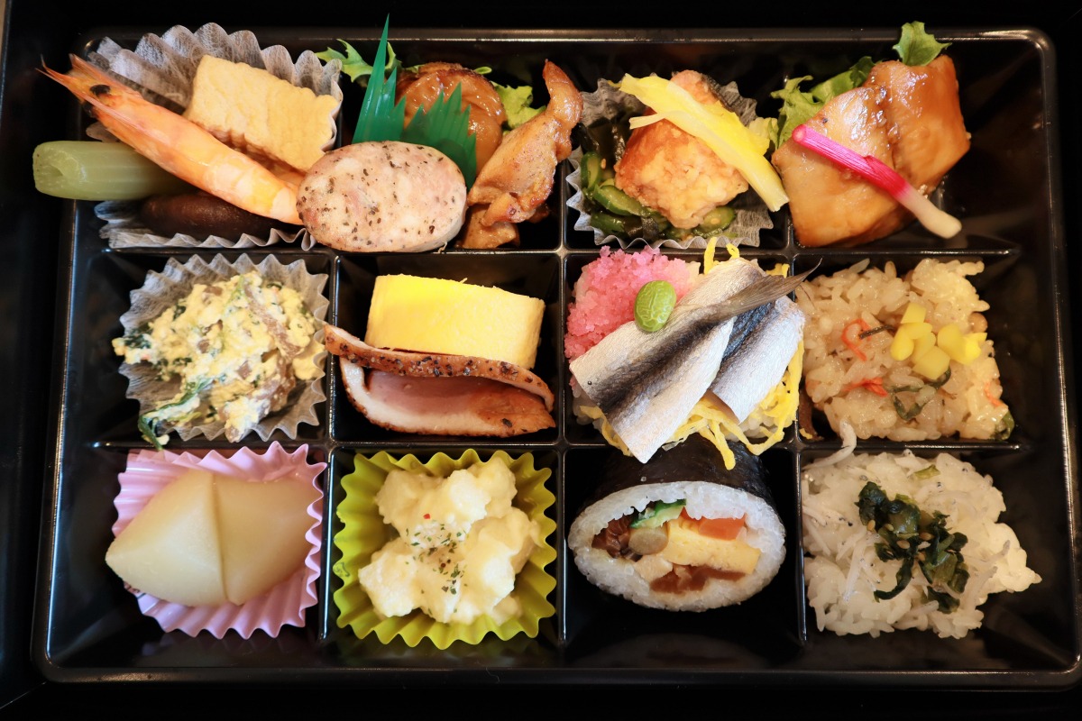 宿泊プランには朝食ボックス付きもあり、岡山の名物料理「ばらずし」や「蒜山おこわ」を中心に、消費量日本一のさわらや生産量日本一の黄ニラ、くだもの王国岡山の桃などを盛り込んだ、彩り豊かな朝食が楽しめます(朝食ボックス付きプランは数量限定/4日前までに要予約)。