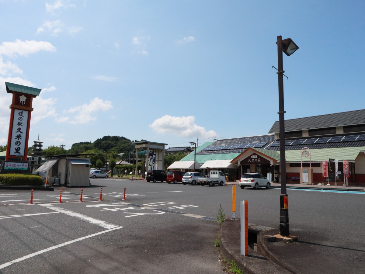 道を挟んではす向かいにあるのが「道の駅久米の里」。新鮮な農産物や精肉、特産品の販売のほか、レストランでは地元食材で作るメニューが楽しめます。久米地域特産のジャンボピーマン"ジャンピー”を使ったメニューもあり。お寿司や総菜も売っているので、購入してホテルで食べるのもおすすめです。