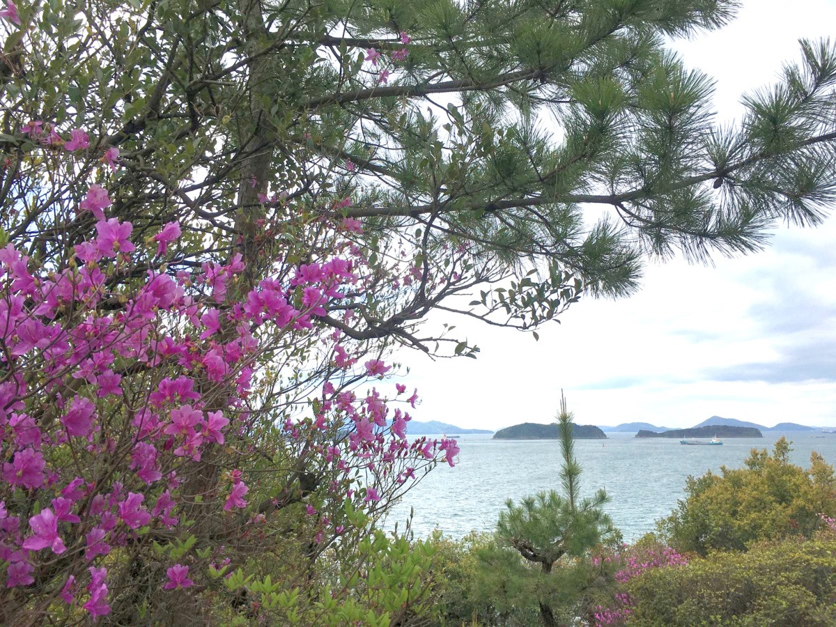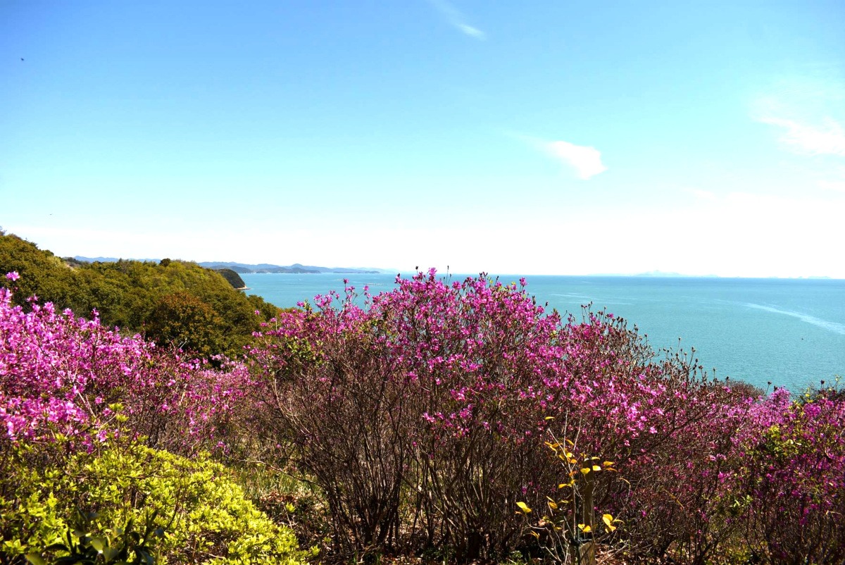 水島灘をのぞむ宮の鼻の岬・通仙園も、言わずと知れたツツジの名所です!海沿いをのんびりと散策したり、鳥の声に誘われて森林浴したりと、居心地の良さも申し分ナシ。ベンチや東屋でちょっと小休止しつつ、瀬戸内海の雄大な景色をひとり占めできますよ。水島工業地帯の夜景を、間近で鑑賞できるスポットとしても人気です。
