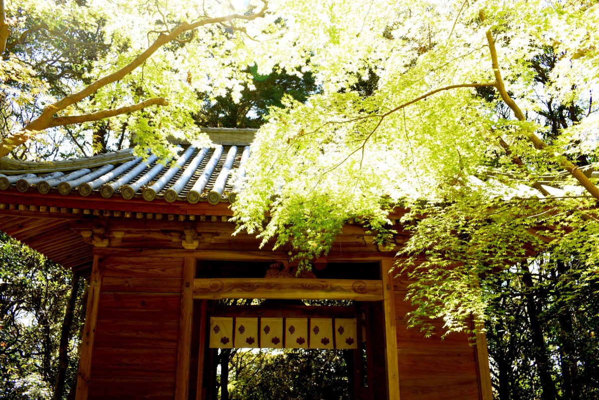 木立のトンネルを抜けて進むと、静寂に包まれた随身門が現れます。牛窓海水浴場から大きな鳥居をくぐり。眺めを楽しみながら階段をのぼって。さあゴールはもうすぐですよ!歴史の深さがにじみ出てくるような趣ある本殿。呼吸を整え、しっかりと参拝いたしましょう。