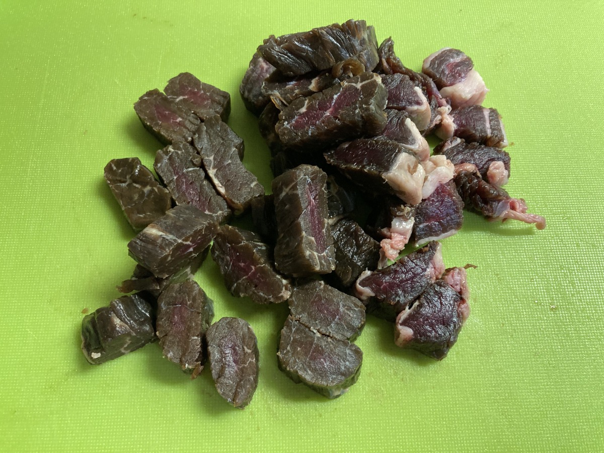 こちらを見ながら、料理初心者の筆者も「干し肉」の調理にトライしました!