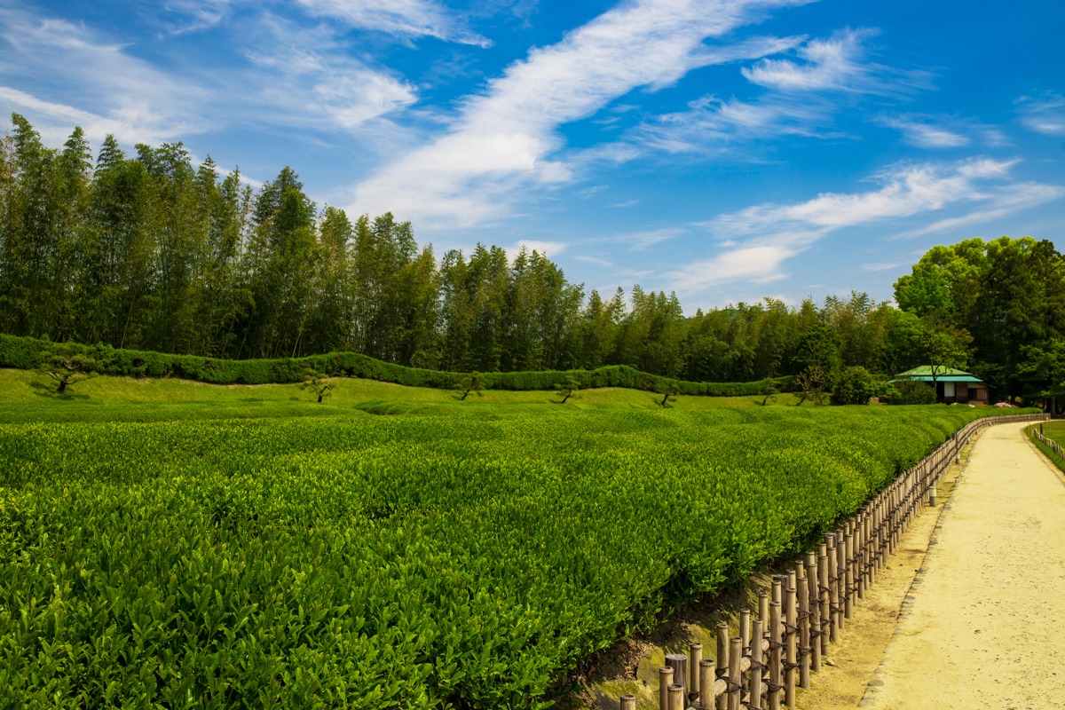後楽園には茶畑もあり、一面の緑に心癒されます。