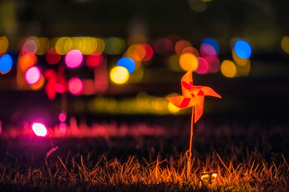 きらめく風車が幻想的で、思わず感嘆のため息がもれます。