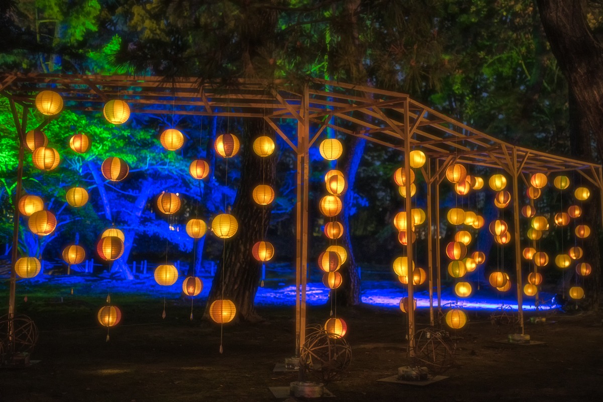 その歴史を感じる庭園と、現代技術のライトアップが融合された素晴らしい演出です。