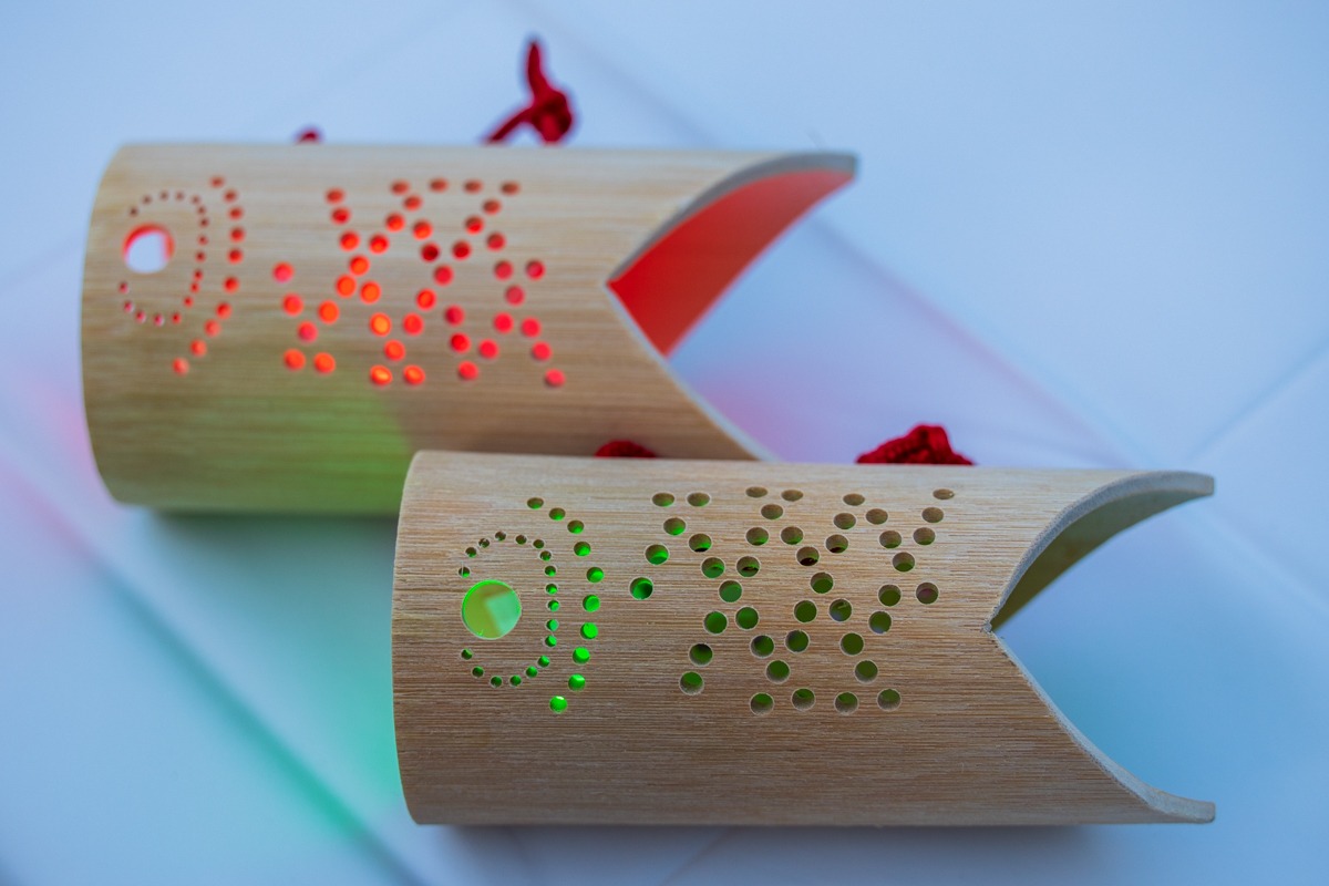 竹の灯篭は、非常に精巧な模様が細工されています。