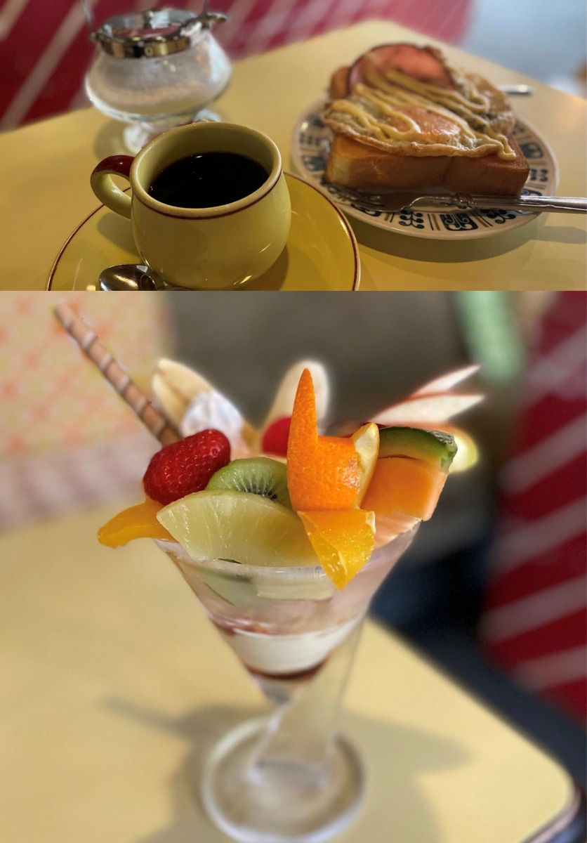 今回はラピュタパンと珈琲、フルーツパフェを注文。