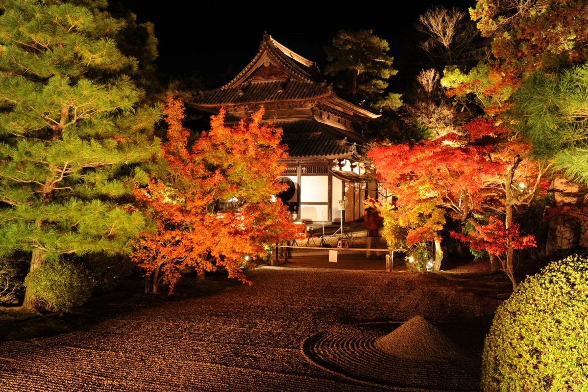 臨済宗東福寺派の禅寺で、画聖・雪舟が少年時代に修行し、涙でねずみの絵を描いたと伝わる古刹です。毎年ライトアップも行われ、伽藍と紅葉が生み出す幻想的な夜の紅葉が楽しめます。