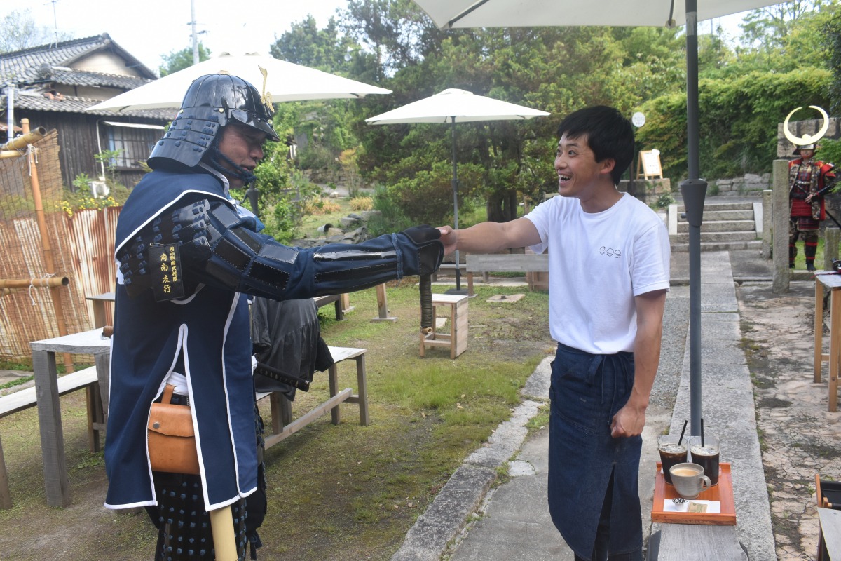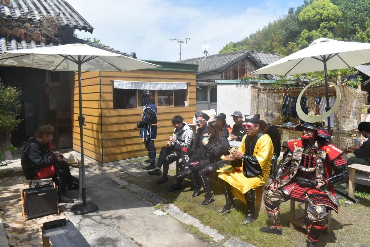 お店に行くと、何やら変わった風体のお客人が。お話してみると香川県から水上バイクという水の上を走る馬で犬島に遊びにおいでとのこと。たいそう犬島がお気に入りのようで、今回2回目の犬島ということでござった。ここは客席全て屋外なので、お客人同士気軽に会話できる雰囲気もとても良い。