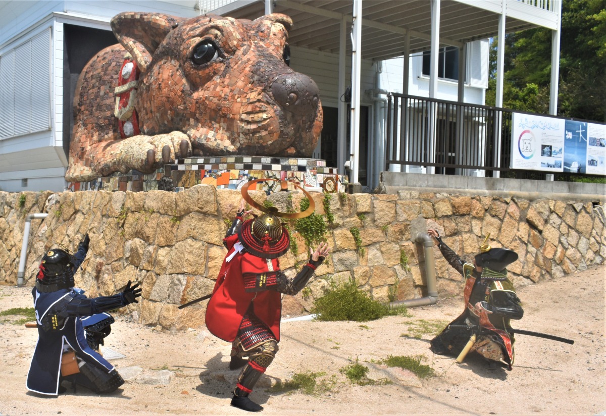 犬島は銅の製錬所の遺構を保存・再生した「犬島精錬所美術館」や瀬戸内芸術祭で人気の瀬戸内海に浮かぶ島じゃが、今回は犬島に残る石丁場を岡山城総普請奉行を勤めた角南友行を案内人に宇喜多秀家、戸川秀安がご紹介いたす。