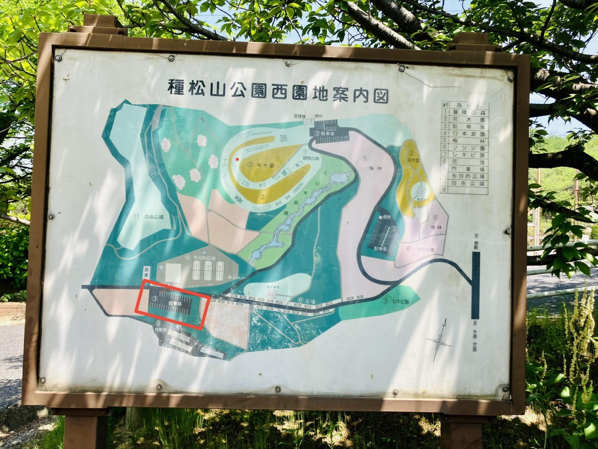駐車場はいくつかありますが、最寄りの第三駐車場(赤線で囲ったところ)がおすすめ。