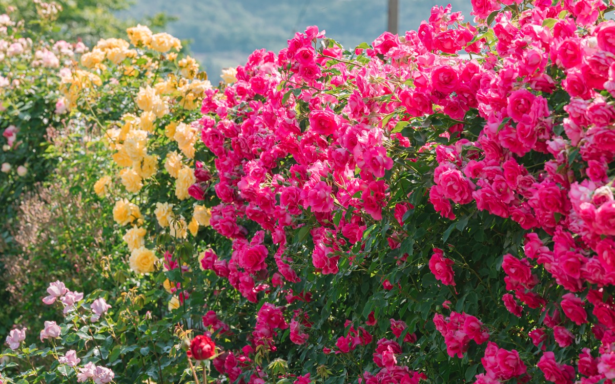 無料で気軽に楽しめる和気町の「日笠バラ園」と倉敷市の「種松山公園バラ園」。