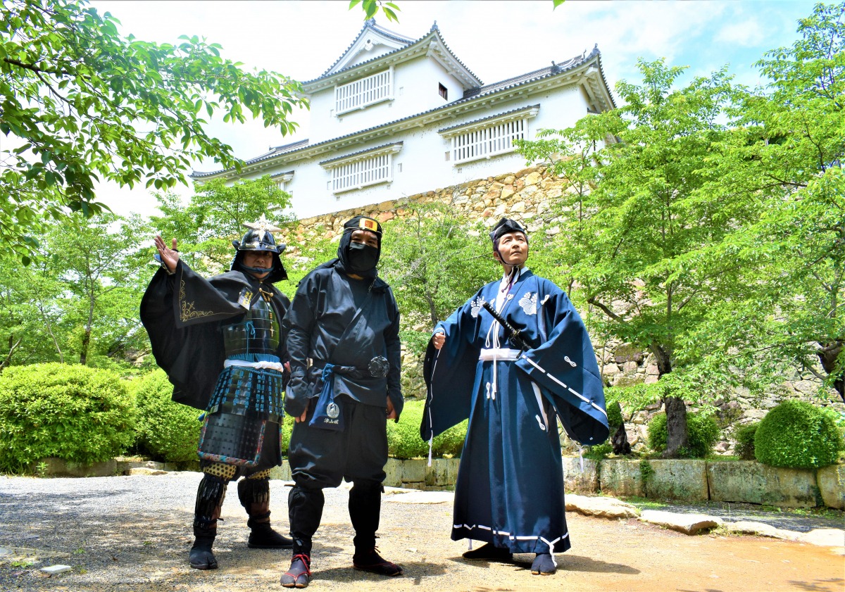 津山城を拠点に活動する作州忍者鶴山隊のメンバーでもある「津山観光ボランティアガイドの会」会長さんに忍者姿でご案内頂いたのじゃが、一二三段と呼ばれる麓から三段に石垣が積み重なっているのは圧巻じゃ。津山城の一番の魅力じゃと思う。この石垣の上には当時、日本有数といわれる多くの櫓が所狭しと建っていたんじゃ。ふもとの津山郷土博物館には縮尺150分の1の精密復元模型が展示されておるのでこれを見ることをお勧めじゃ。