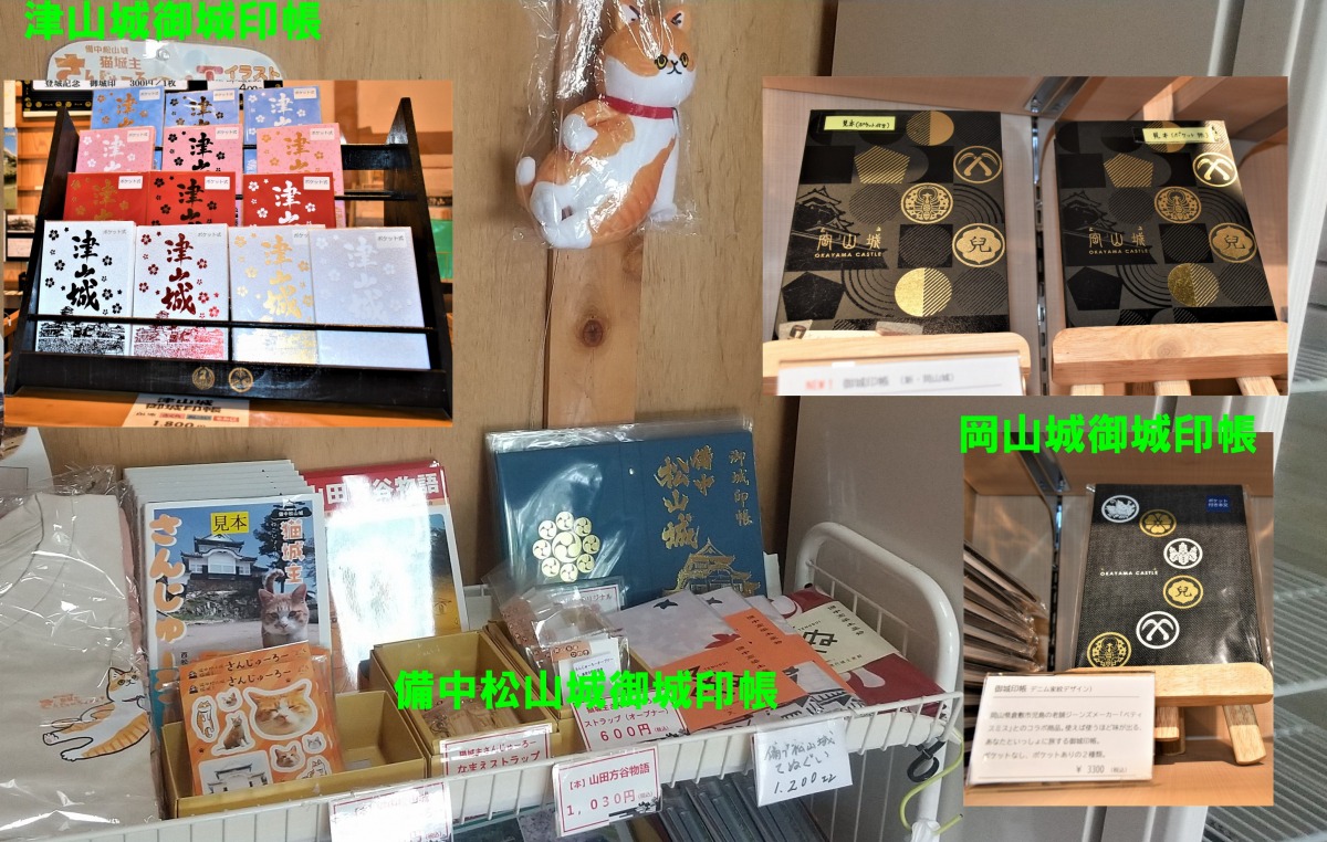 岡山県内では現在3城でオリジナル御城印帳が販売されておる。岡山城、津山城は御城印の販売所で、備中松山城はシャトルバス運行時は城まちステーション(運行のない時は終点のふいご峠駐車場売店)に並んでおるので一度手にしてみるのも良いじゃろう。