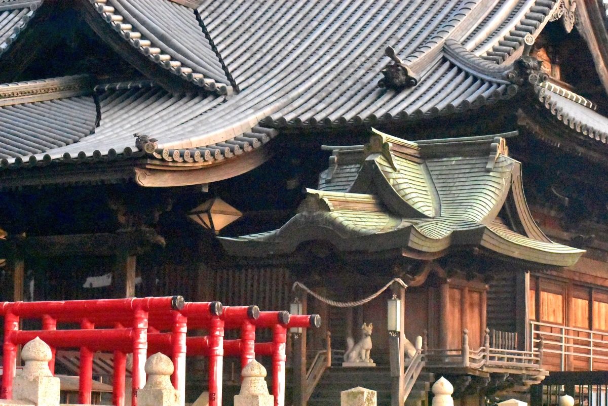 西大寺に古くから伝わるサイの角。絵馬堂には白い馬(神馬)と、そして白狐。神さまにまつわる様々な生きものたちを、辿るようにお参りしてみましょう。邑久大工が手がけたという複合社殿・牛玉所殿と、まるで一体化したかのような稲荷社。寄りでも、引きでも。屋根や細工をながめてみてください。