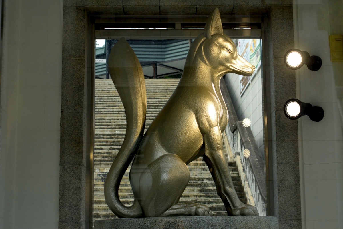 RSK山陽放送本社とオリエント美術館にはさまれたビルの谷間の、ひっきりなしに参拝者が訪れる神社です。口角の上がったやんちゃそうな!?狛狐。真っ赤な拝殿。梅をかたどった灯ろうやエキゾチックな狛犬など。神社系稲荷ならではの混在した世界がひろがっています。参道からノスタルジックな上之町會舘へ迷い込めば、美味しいランチもいただけますよ。