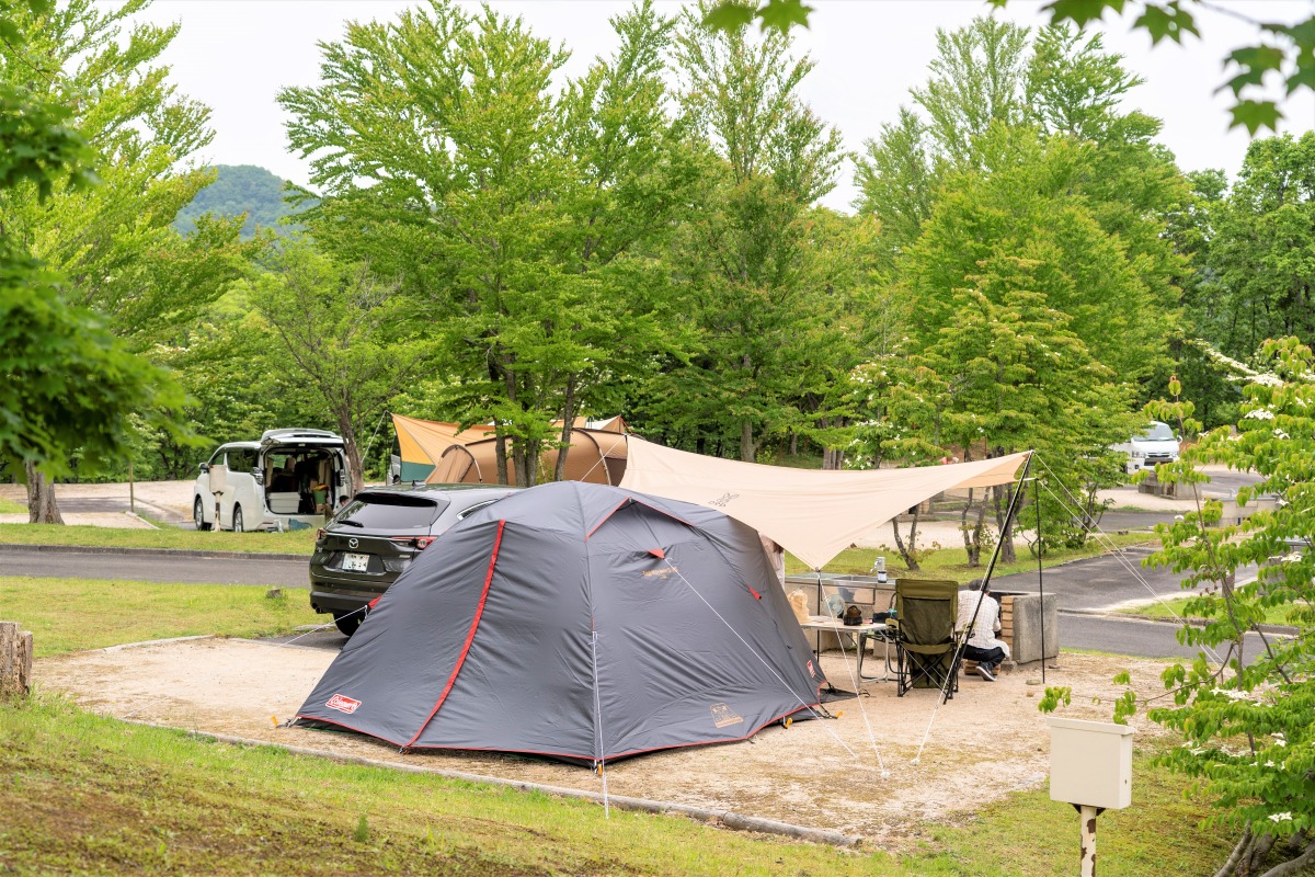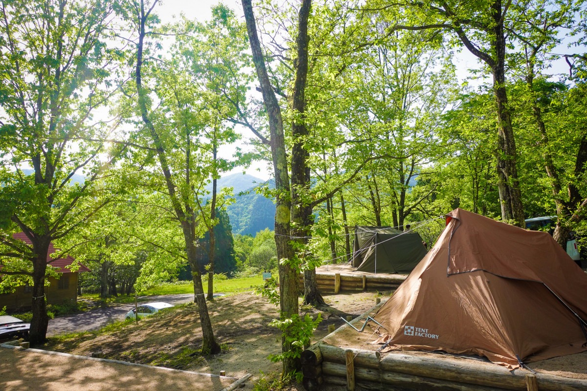 テントサイトは木立の中にあるので、タープを張らなくても自然の木陰ができて爽やかな風が通ります。