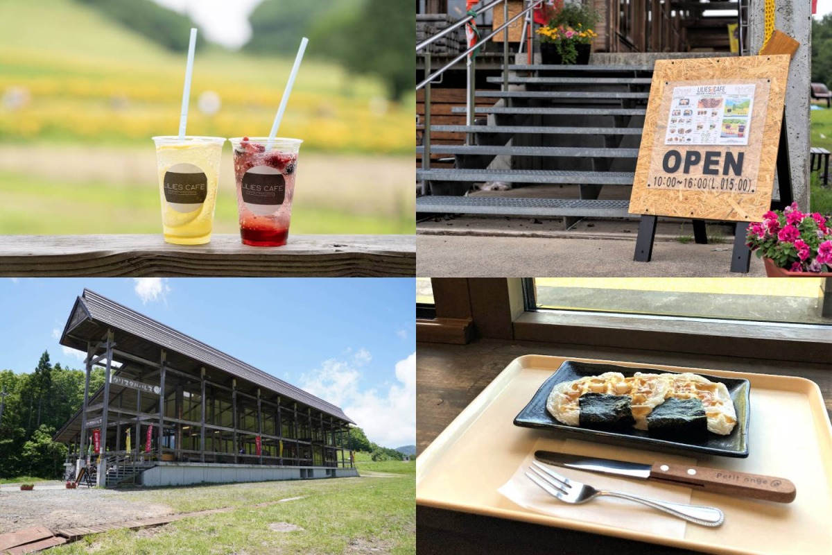 2023年4月、キャンプ場からすぐの恩原高原スキー場クリスタルパレス内に「LILIES CAFE」がオープン。自家製レモンシロップや甘酸っぱいベリーを使ったスカッシュや、お餅をワッフル型で焼いたモッフルのほか、からあげ定食やおにぎりなどの軽食も楽しめます。11月まで(予定)の期間限定で営業中です。