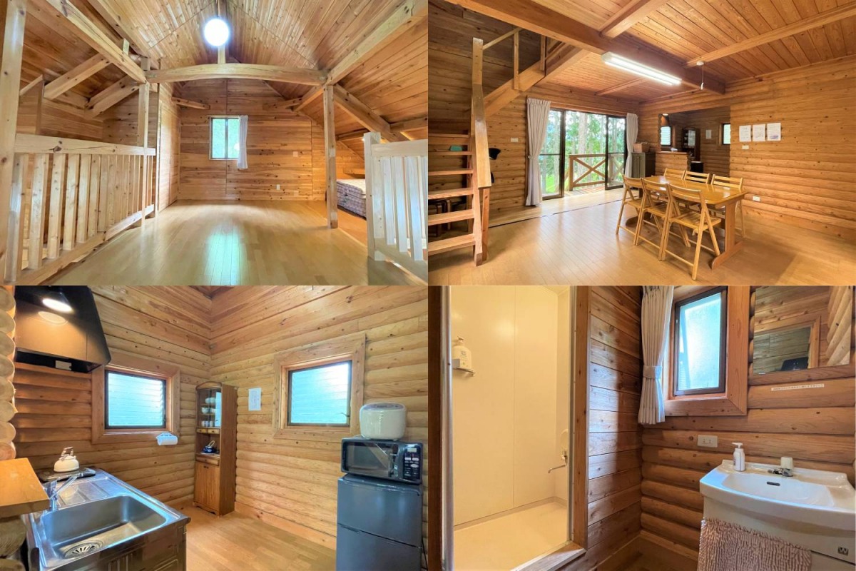 テントサイトの他、6人用のバンガロー(電気・ガス・水道完備)6棟、8人用(電気・IH・水道・トイレ完備)のログハウスが3棟あります。