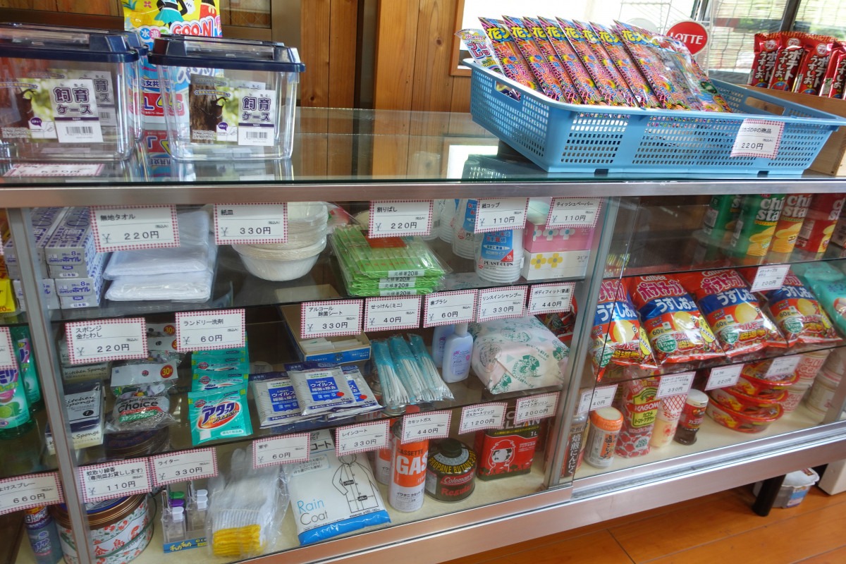 管理棟では必要な備品や調味料、薪の販売、バーベキュー設備のレンタル等も行っています。