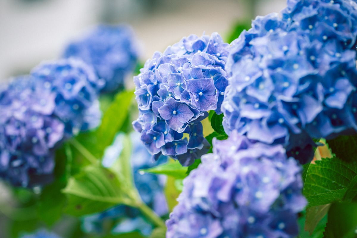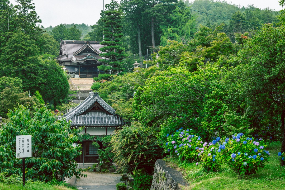 しっとりとした雨の風景を、紫陽花が彩ります。