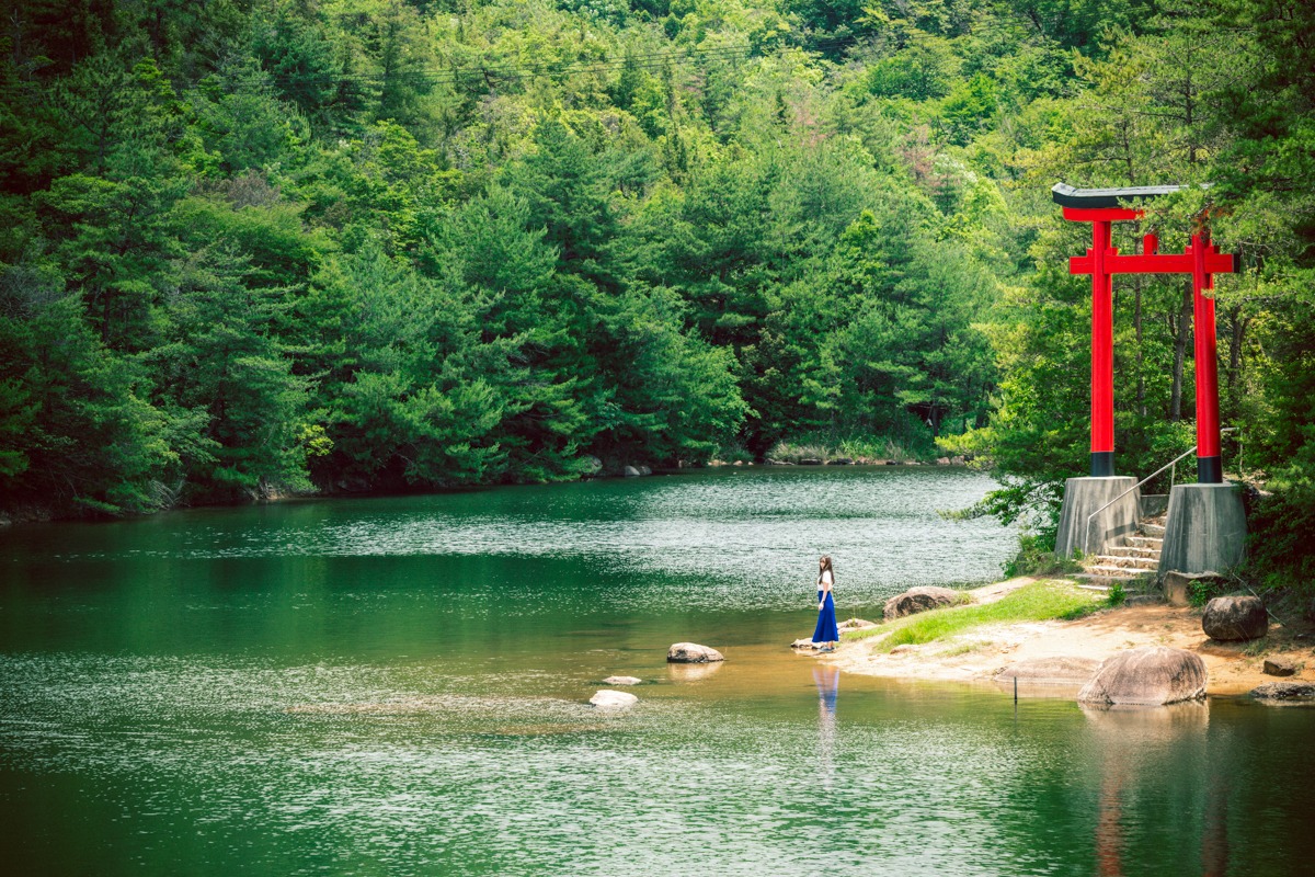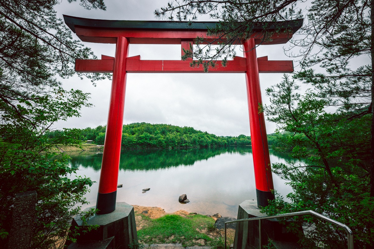 湖にある鳥居が神秘的!岡山の絶景寺「龍泉寺」