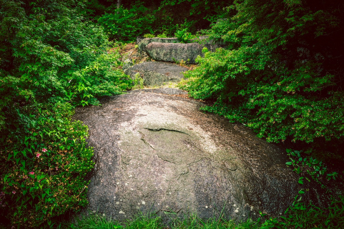 悠久の歴史を感じる鯉岩と細道