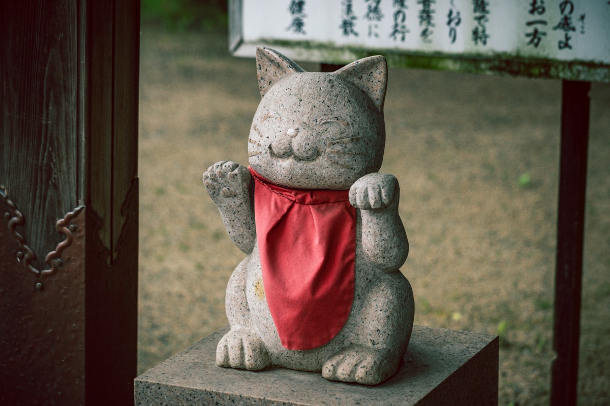 龍泉寺は、干支の像やこちらの招き猫など、かわいい要素も魅力。