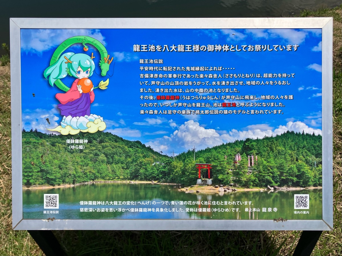看板左上にいるのが、優鉢羅龍神(ゆら姫)ちゃん。