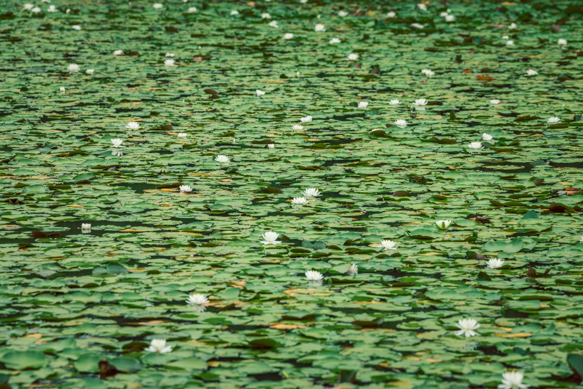 ちょうど開花時期で、白い睡蓮の花がたくさん咲いていました。