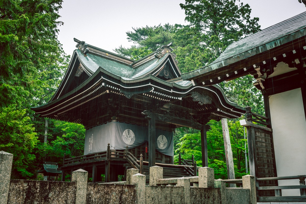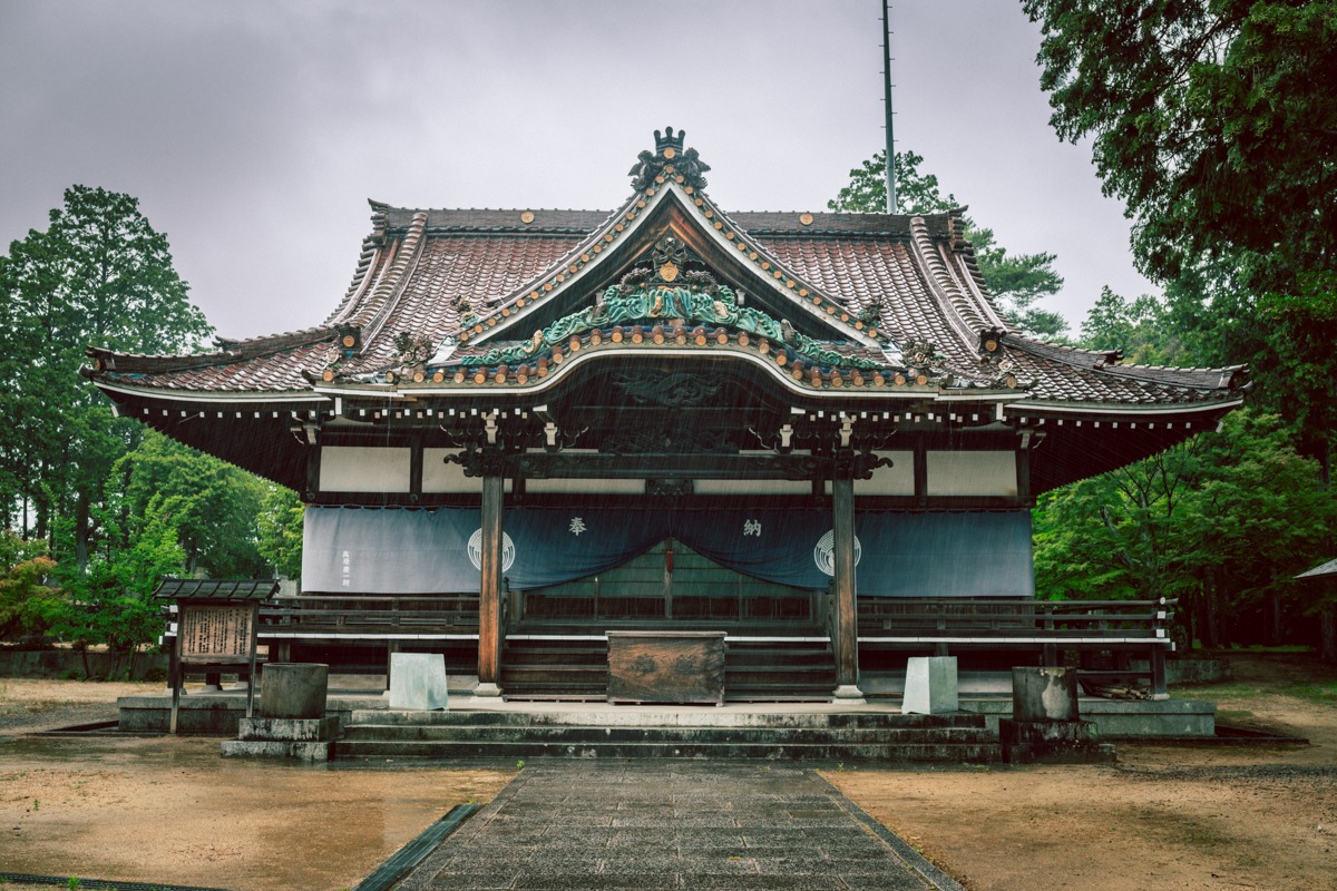 雨にけぶる拝殿