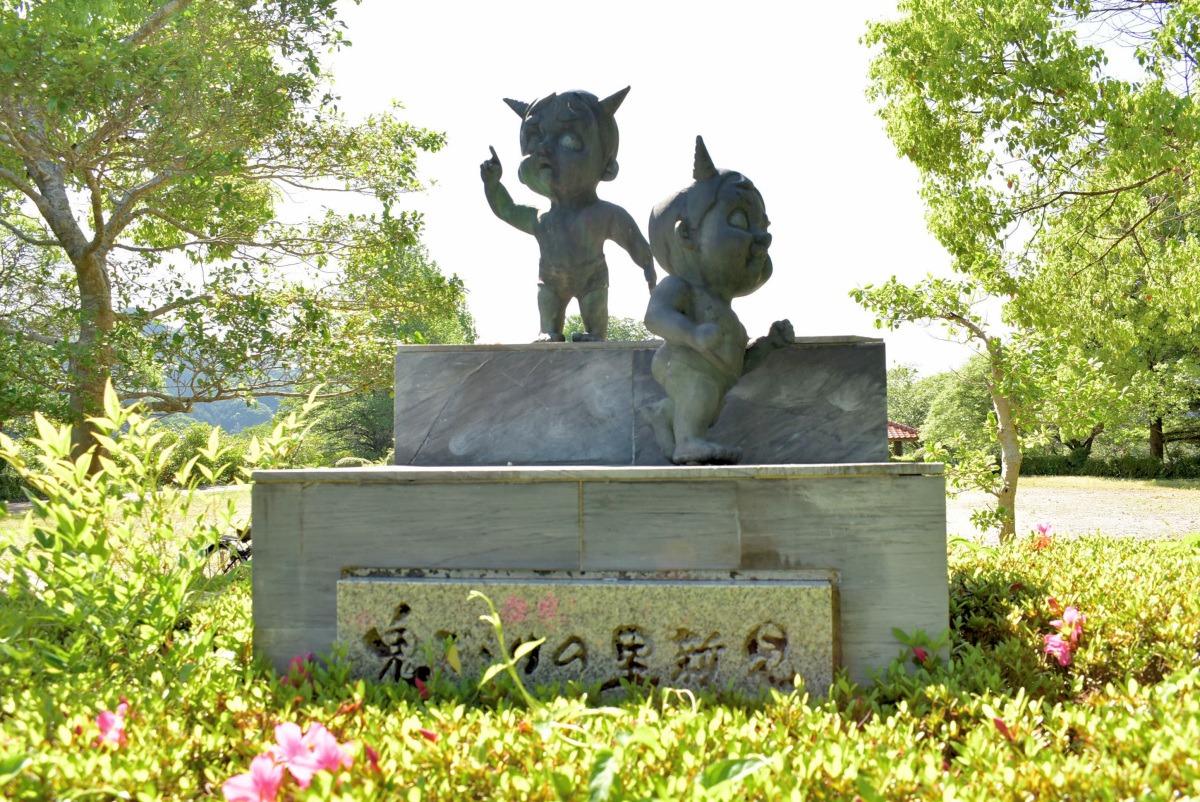 新見市屈指の桜の名所「城山公園」には、まったく怖くない、むしろカワイイ鬼の子が。