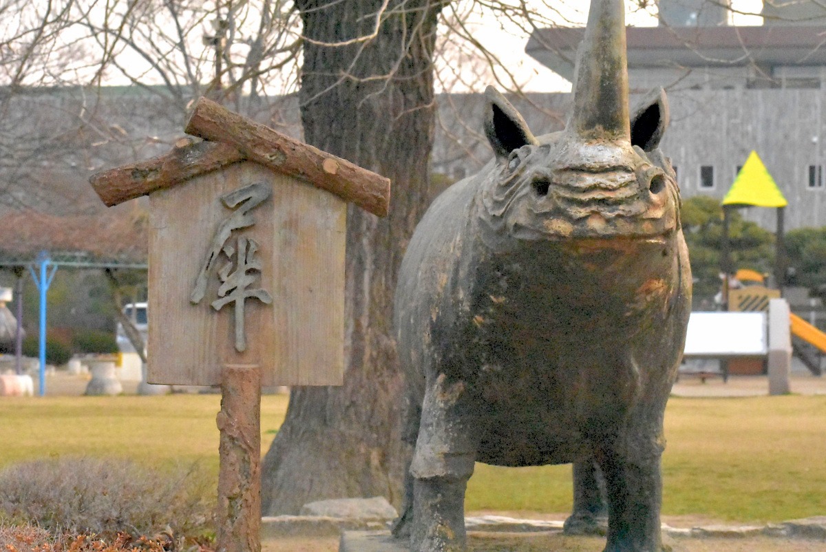 「西」大寺(さいだいじ)にある、「犀」(サイ)のモニュメント。