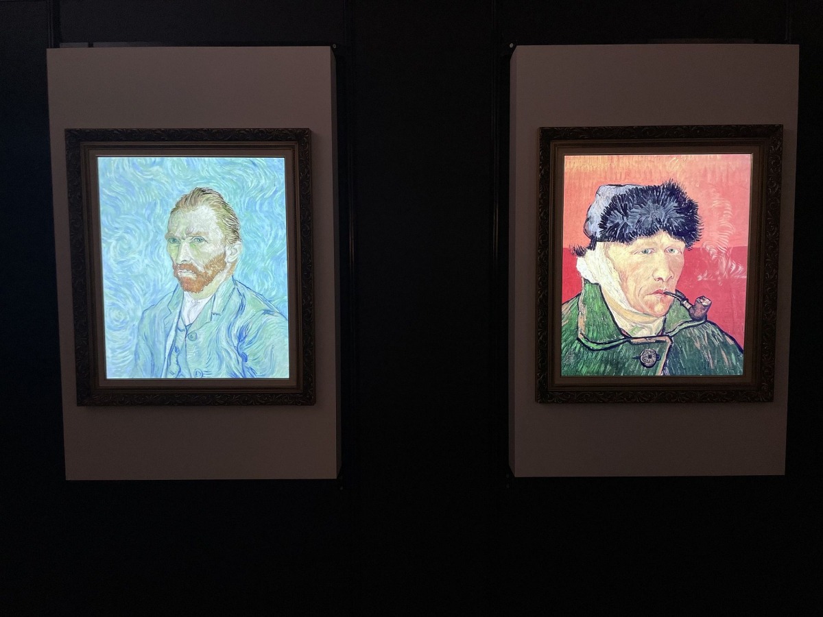 ゴッホの書き続けた肖像画は40点近くあり、その中から象徴的なものを取り上げ、飾られています。肖像画は瞬きをしたり、動き出し生きているような、魔法を使って絵が動ごいている様な不思議な感覚になりました。
