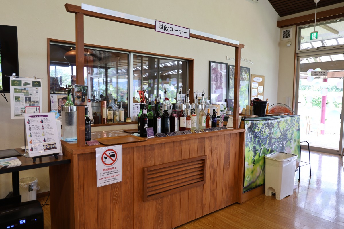 ワイン好きにはたまらない、試飲コーナーもあります。車で来ていたので、アルコールの入っていないブドウジュースを頂きました。アンチエイジングと美肌効果のあるポリフェノールがたっぷり入ったドリンクでした。ワインだけでなく、子どもでも飲める美味しいブドウジュースも販売されています。
