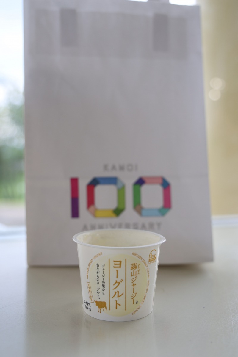 デザートは、もちろん蒜山ジャージーヨーグルト!mtアート巡りのアートな紙袋も、施設を巡るごとに数が増えていきました。