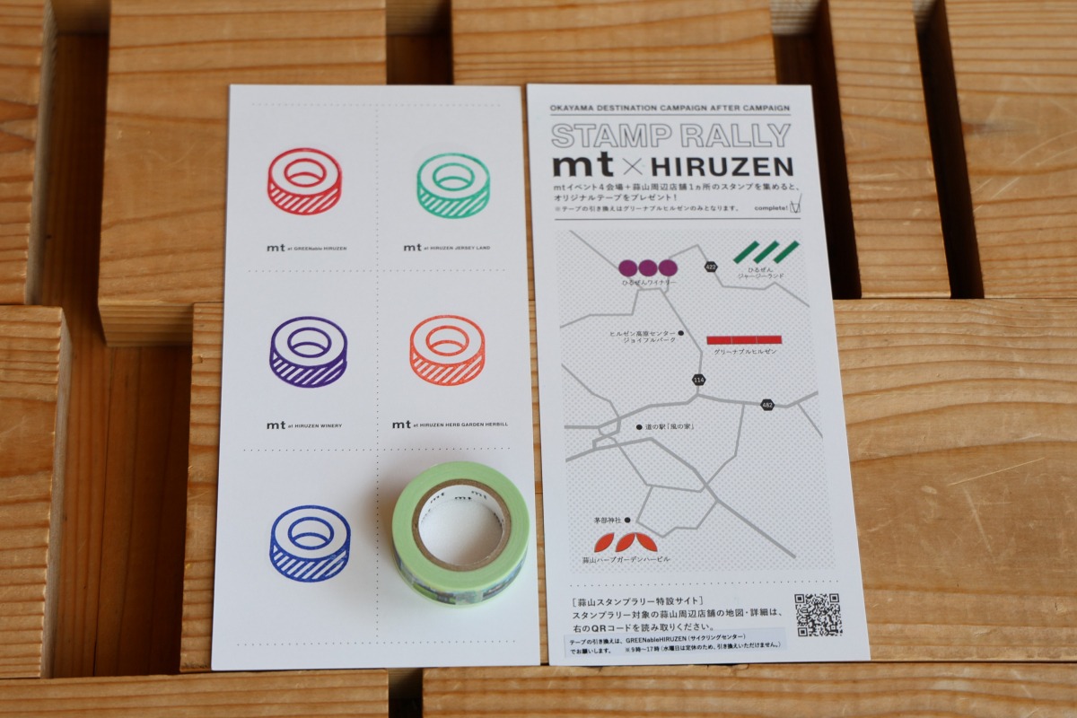 蒜山ハーブガーデンハービル、GREEENable HIRUZEN(グリーナブルヒルゼン)、ひるぜんワイナリー、ひるぜんジャージーランドの4つの施設では、施設ごとに違うデザインが楽しめる「mt project」が実施され、4会場と対象店舗1ヶ所の合計5つのスタンプ集めると、イベント限定のマスキングテープももらえるスタンプラリーも実施されています。