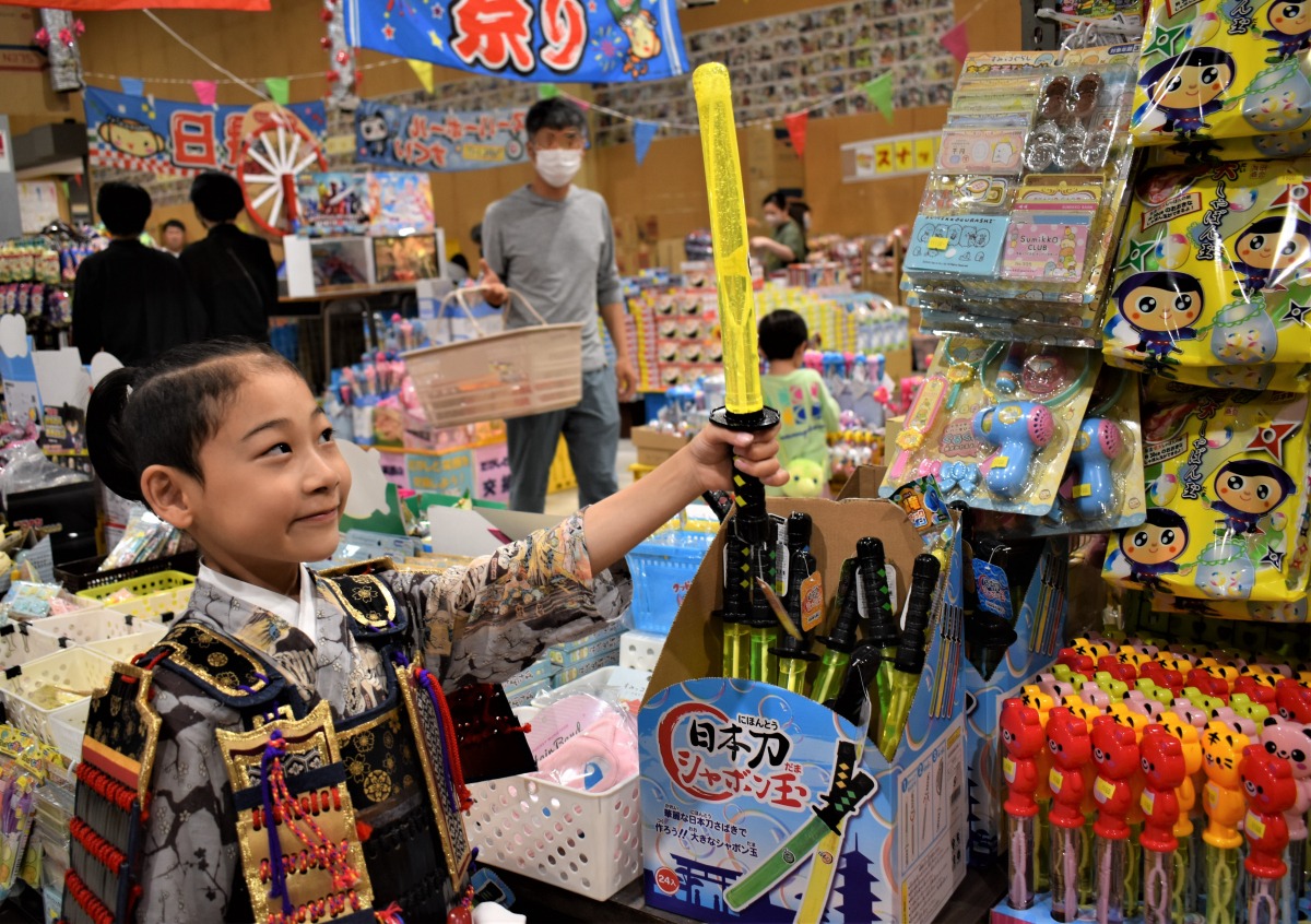 最初に見つけたのはシャボン玉コーナーにあった「日本刀シャボン玉」。幸先良いスタートじゃ。