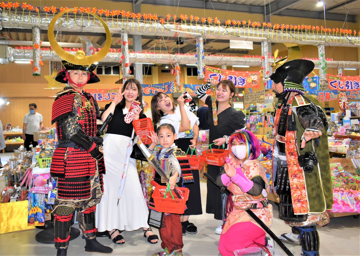 駄菓子や玩具の種類が多すぎて、どれも目移りしてしまうので、ちと面白い買い物の仕方に挑戦してみたんじゃ。武将隊らしく各自縛りを設けて買い物してみた。