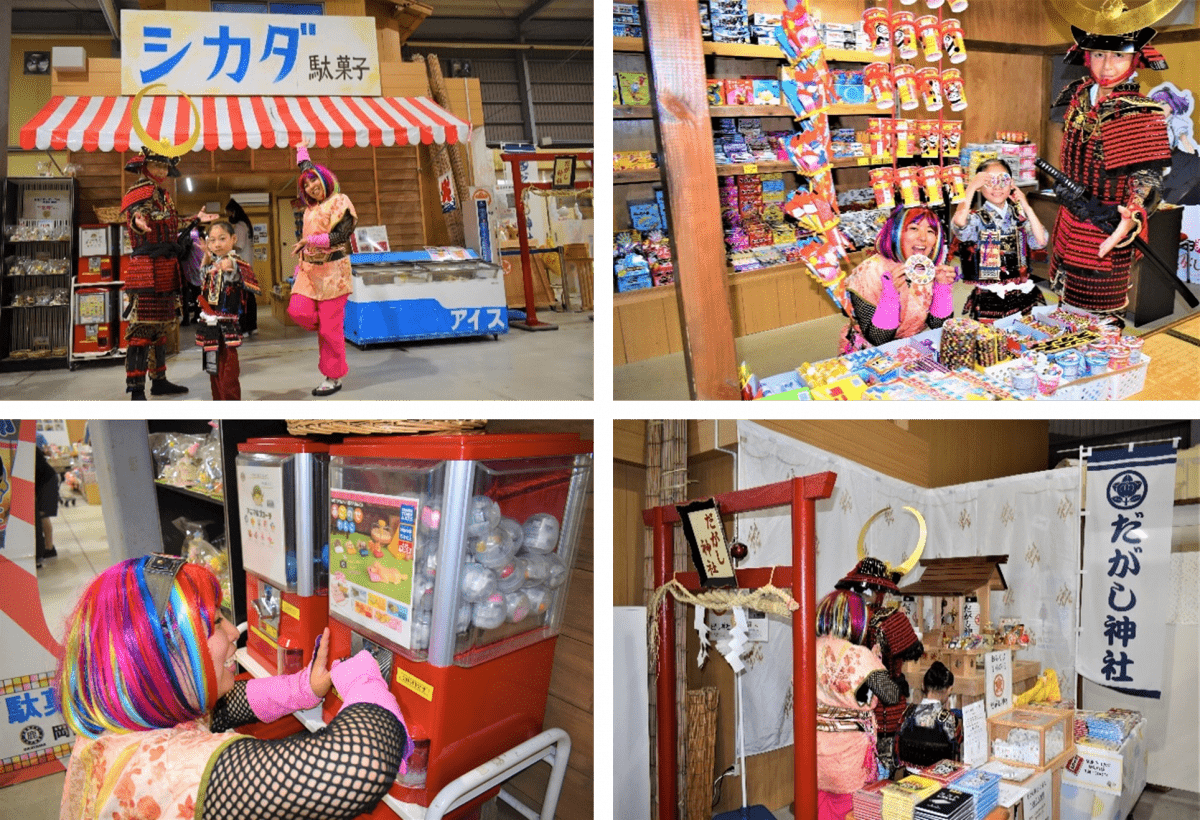 写真映えするスポットやカラフルでとっても可愛い飾りつけも沢山あったり、可愛らしいイラストやパッケージの駄菓子もあるのでSNSにもよくアップされておるようじゃ。